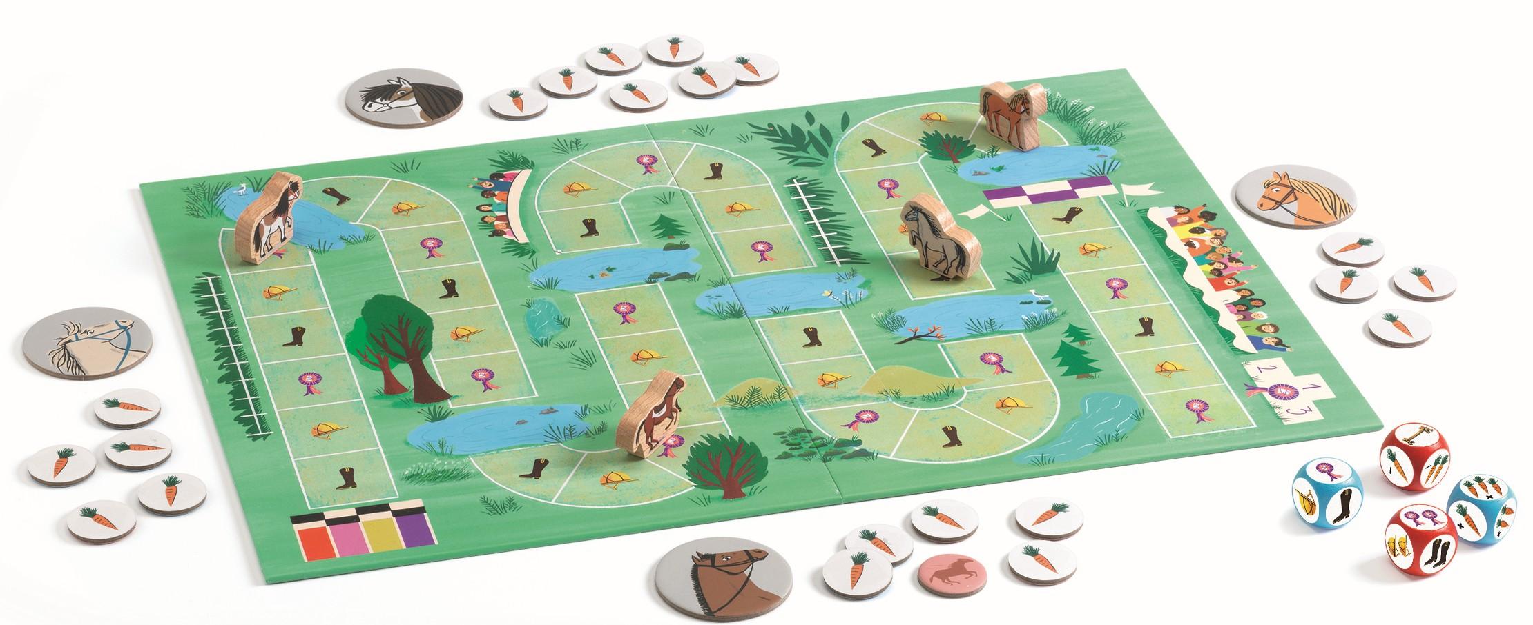 A 5-6 ans, on peut tout doucement commencer à proposer des choix aux enfants. Avant cela, l’impulsivité les pousse à ne pas trop prendre le temps de réfléchir et jouer la première action qui leur passe par la tête. Mais à cet âge, ils comprennent qu’il est parfois bon de se poser, de ne pas se précipiter et de réfléchir à la meilleure option lorsqu’il y en a plusieurs. Nous sommes partis de là pour imaginer la mécanique de Caballo: un choix entre le trot et la galop à chaque tour. Autrement dit: lorsque je galope, je consomme de l’énergie et si je choisis de trotter, j’en récupère. Si je vais tout le temps à fond, je m’épuise avant la fin et si je trotte tout le temps, je ne peux pas gagner la course. Il faut donc apprendre à doser son effort, foncer au bon moment… et ressentir les sensations d’une vraie course !