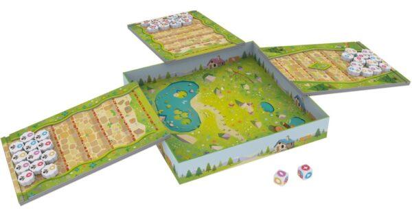 Super facile et fun ! Chacun à son tour, on lance les dés Saï Saï pour découvrir quelles couleurs de brebis pousser. Il s’agit ensuite de glisser astucieusement nos brebis sur notre plateau incliné, en essayant de ne pas bloquer les autres. Le premier joueur à faire grimper ses 12 brebis dans la prairie (la boîte de jeu) remporte la partie !