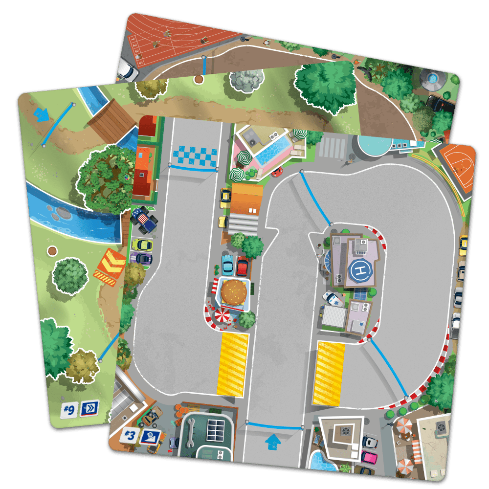 Turbo Kidz est un jeu de parcours. Ou de course si vous préférez. Par équipe de deux. En coopération si on est 2 ou 3, en mode compétitif à partir de 4 joueurs. Et c’est dans cette configuration-là que le jeu nous semble le meilleur.
